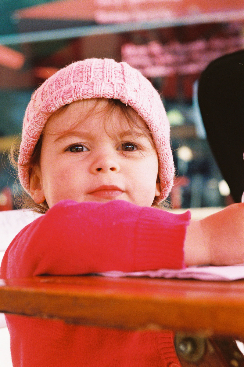 As you will see in most next rolls, my daughter is my favourite model. But capturing kids on film is challenge on its own. As you know, digital photography allow you to spray and pray. You trust your auto-focus and 5 frame per seconds combo to get 50 pictures of your moving child and you will get some keepers. Film is different. You have one shot. You do the focus thing. I have to say she is used to pose for me now but she was only two years old back then and I was surprised again at the result. The red tint is the result of the red parasol we were under on this sunny winter day at the South Melbourne market.